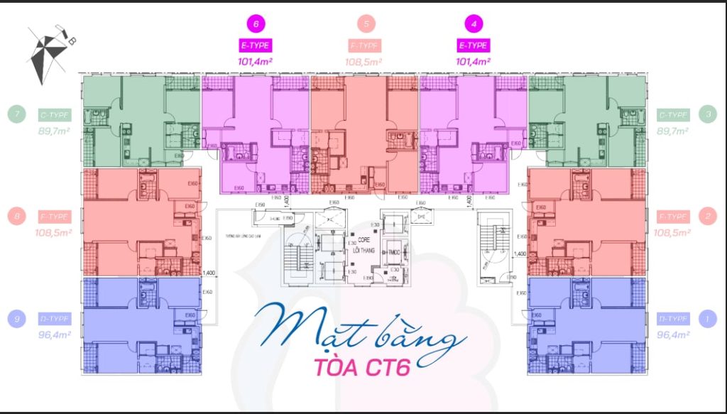 Tổng diện tích sàn xây dựng của tòa CT6 lên tới hơn 44.000 m², trong đó phần lớn diện tích dành cho không gian căn hộ. Tòa nhà cung cấp khoảng 260 căn hộ với cơ cấu đa dạng, phù hợp với nhiều nhóm khách hàng khác nhau như gia đình trẻ, hộ gia đình nhiều thế hệ hoặc người nước ngoài sinh sống và làm việc tại Hà Nội. Các căn hộ được bố trí khoa học, tối ưu diện tích sử dụng, đảm bảo khả năng đón ánh sáng và thông gió tự nhiên.